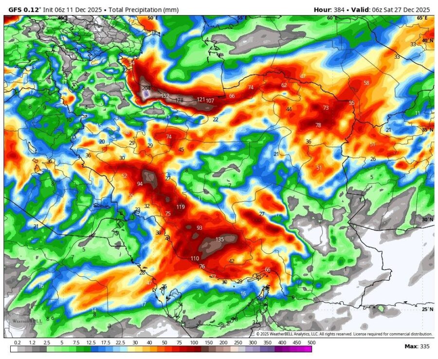 وی افزود: فردا (شنبه، ۲۲ آذر) علاوه بر مناطق اعلام‌شده، برخی مناطق شمال‌غرب، غرب، شمال سیستان و بلوچستان و خراسان جنوبی نیز تحت تأثیر این سامانه قرار می‌گیرند و بارش باران، رگبار، رعدوبرق و وزش باد شدید در این مناطق دور از انتظار نیست و در برخی نقاط نیز پدیده گردوخاک رخ خواهد داد.