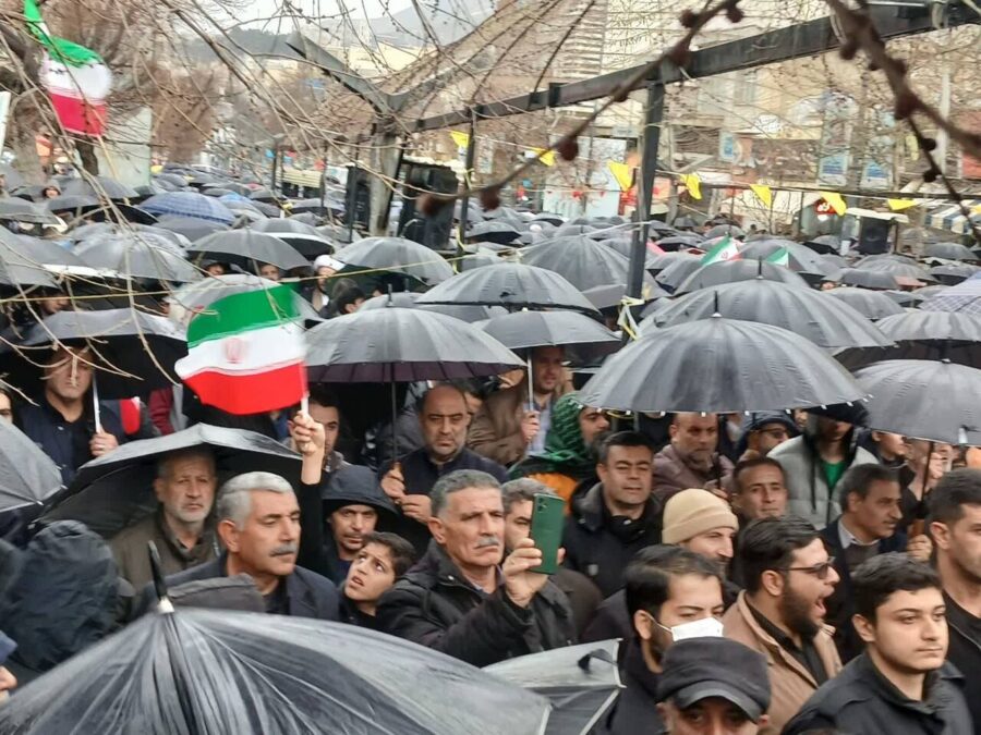 آغاز راهپیمایی ۲۲ بهمن در سنندج زیر بارش باران
