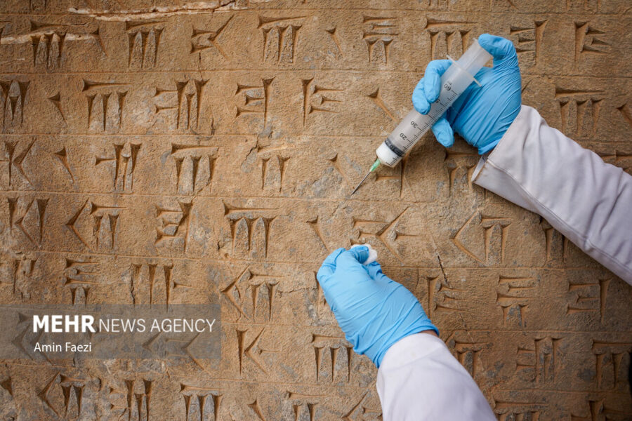 مرمت بزرگترین کتیبه تخت جمشید با استفاده از مواد روز دنیا