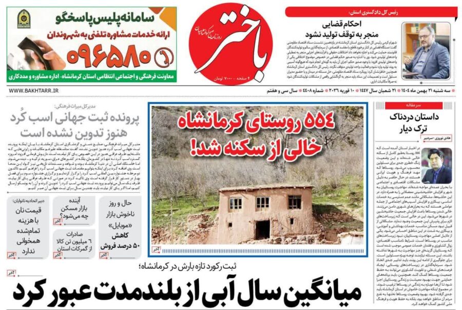 صفحه اول روزنامه‌های کرمانشاه دوشنبه ۲۱ بهمن ماه