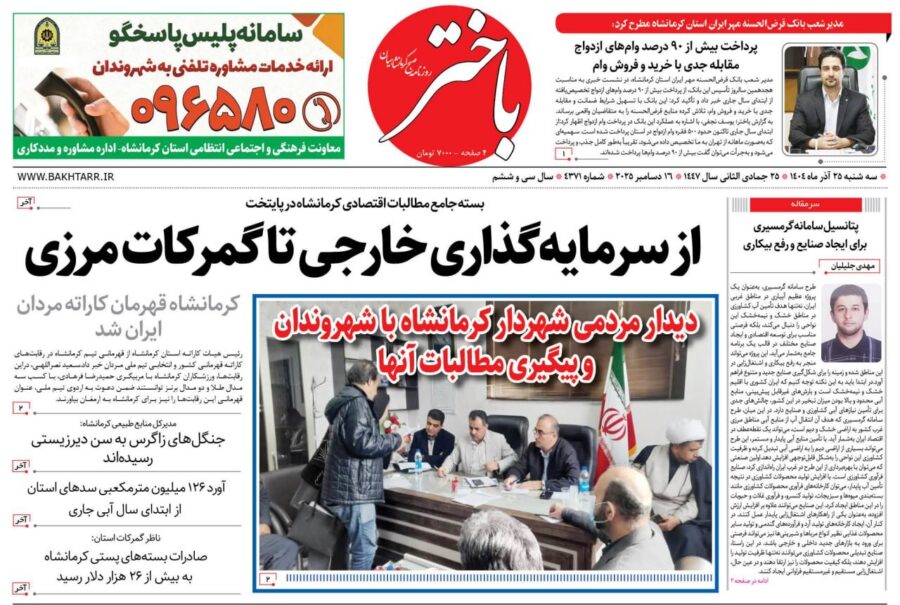 صفحه اول روزنامه‌های کرمانشاه سه‌شنبه بیست و پنجم آذرماه