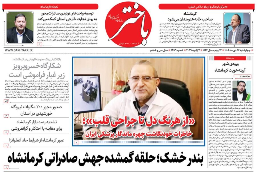 صفحه اول روزنامه‌های کرمانشاه چهارشنبه هفدهم دی ماه