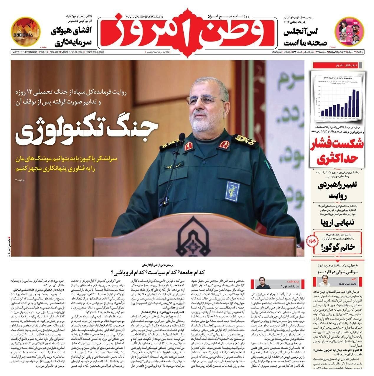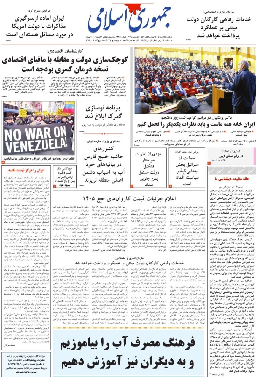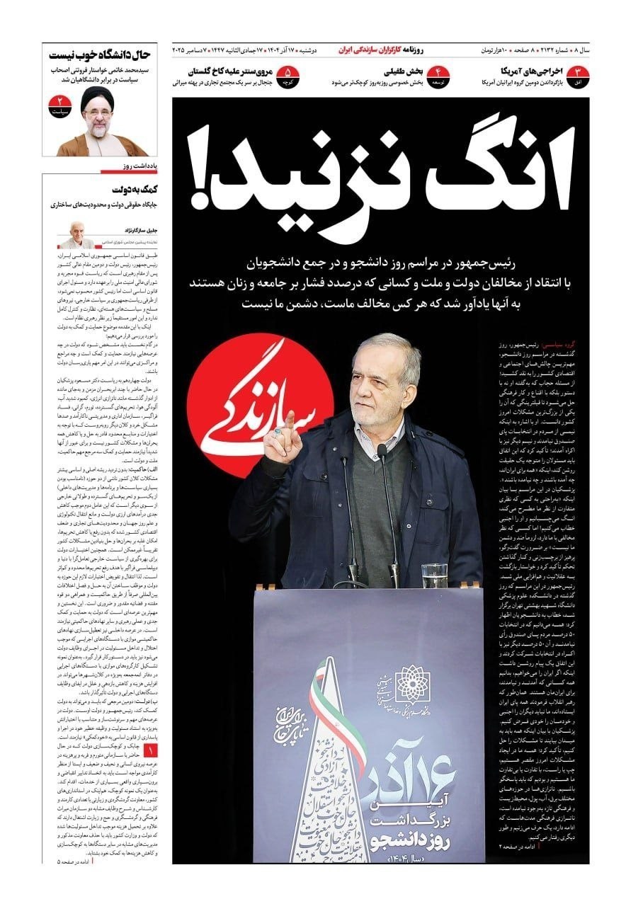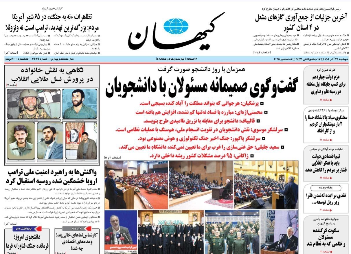 صفحه اول مطبوعات دوشنبه 17 آذر/عبور راهبردی آمریکا از اروپا