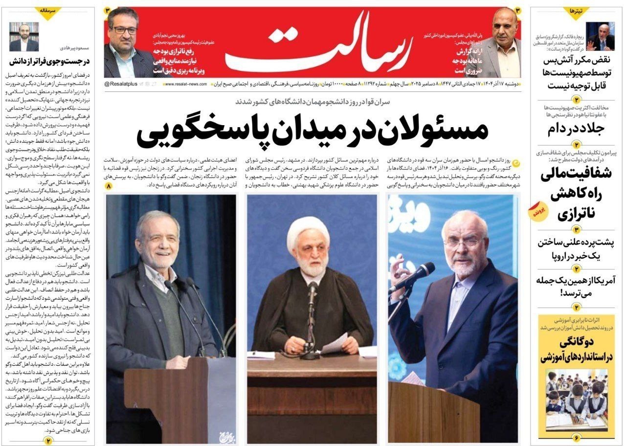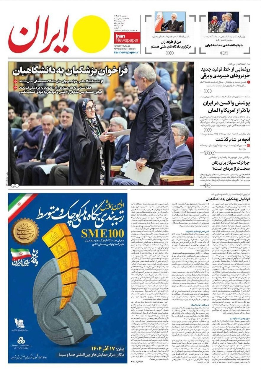 تصاویر منتخب صفحات نخست روزنامه‌های دوشنبه 17 آذر منتشر شد.