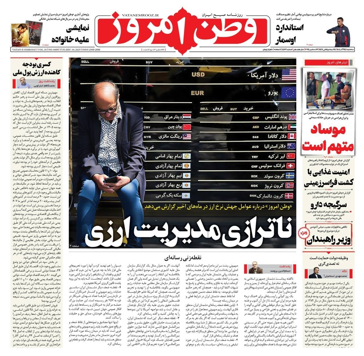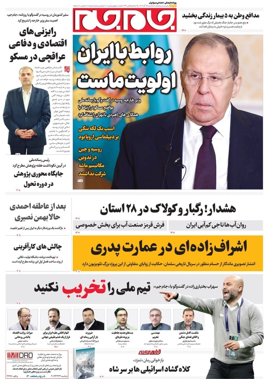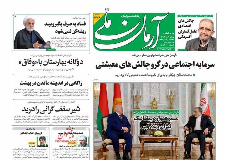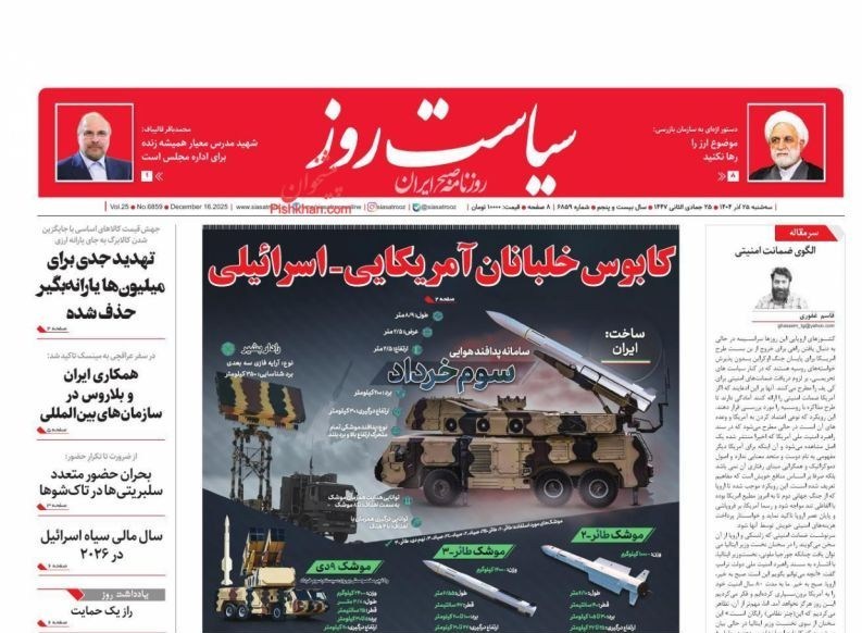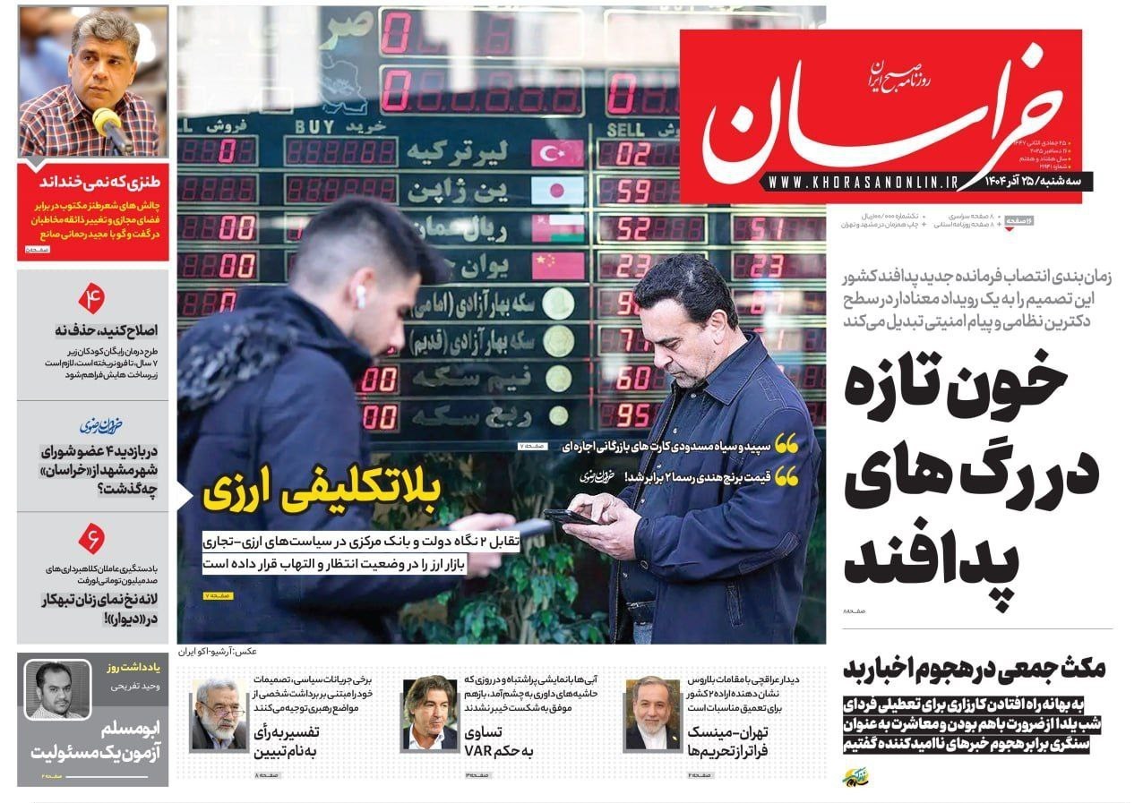 صفحه اول مطبوعات سه شنبه 25آذر/خون تازه در رگهای پدافند