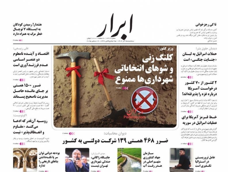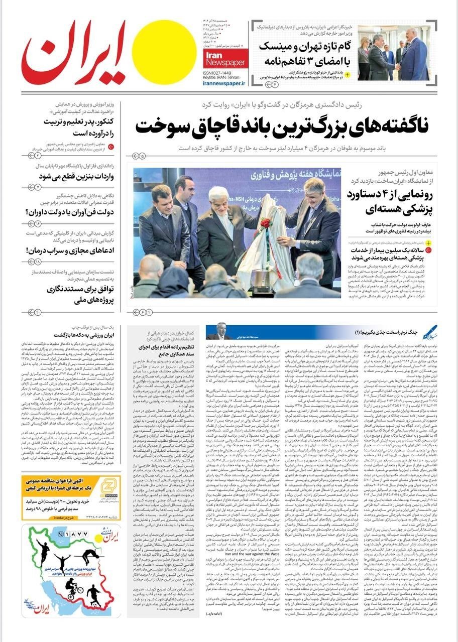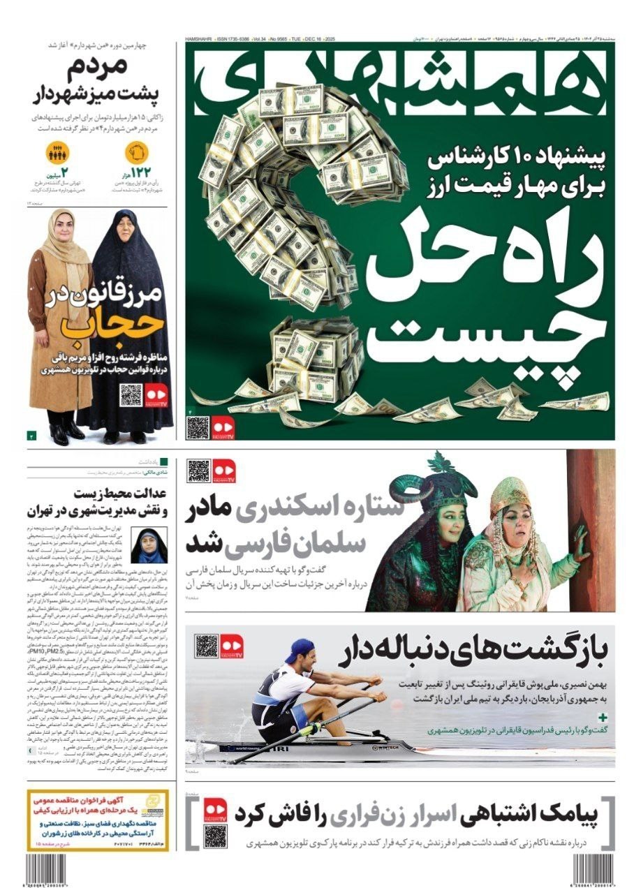 تصاویر منتخب صفحات نخست روزنامه‌های سه شنبه 25 آذر منتشر شد.