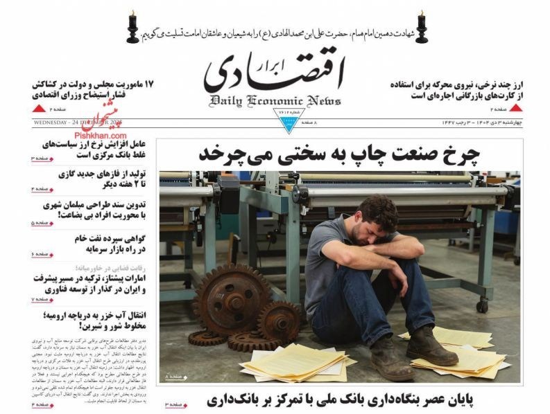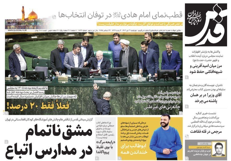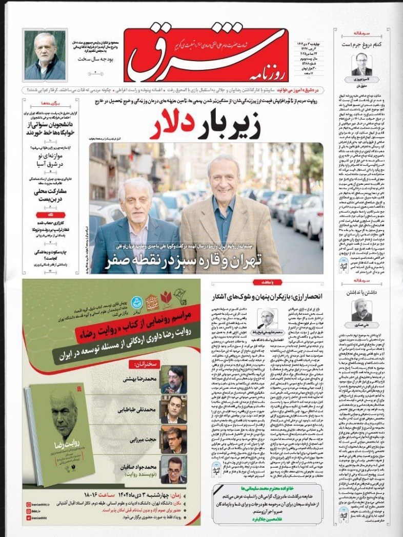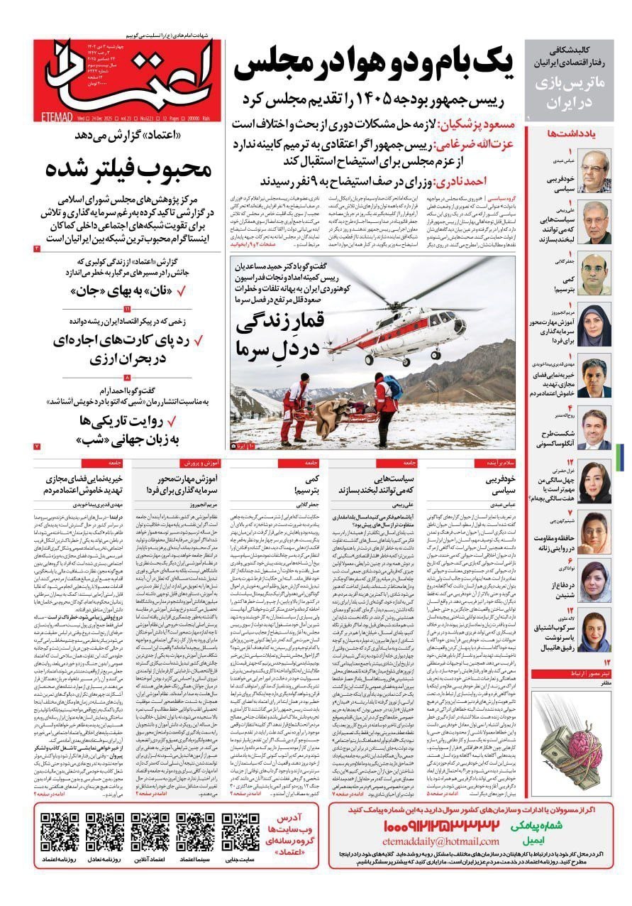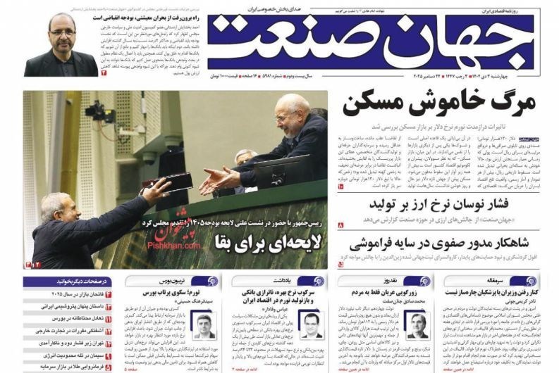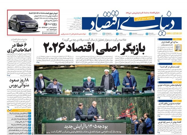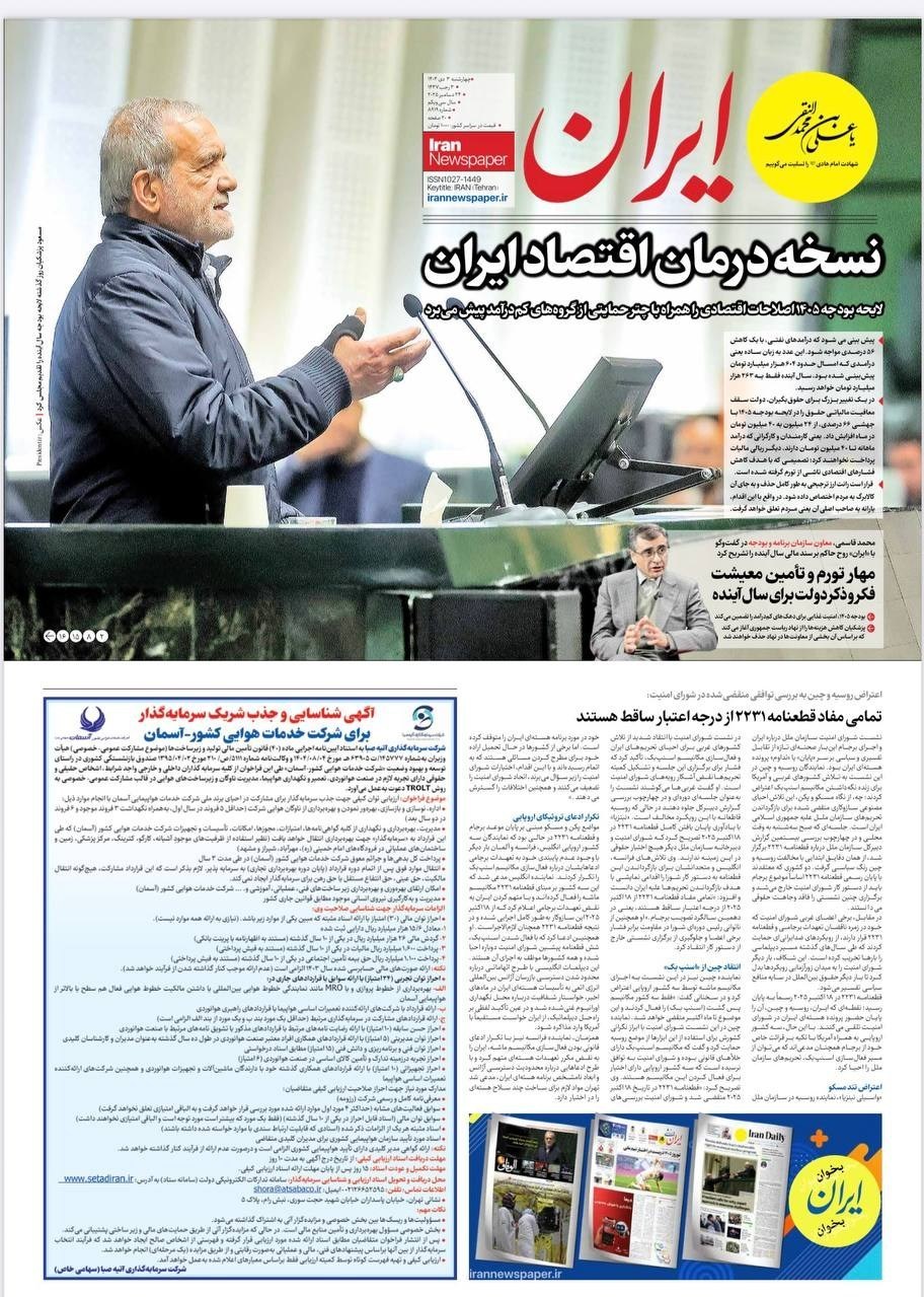 صفحه اول مطبوعات چهارشنبه3 دی/بودجه انقباضی تر از همیشه