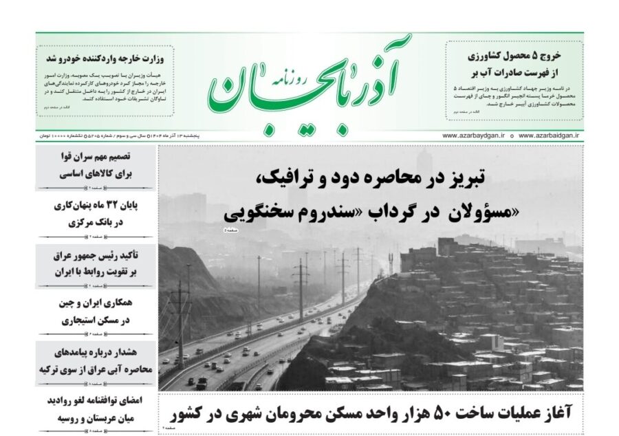 صفحه نخست روزنامه‌های آذربایجان شرقی ۱۳ آذر ۱۴۰۴