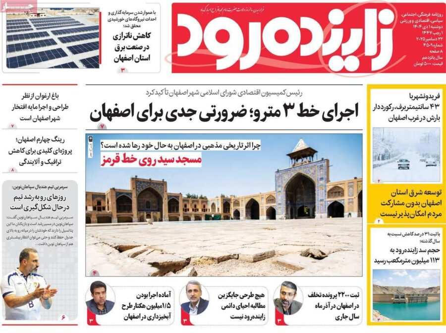 صفحه نخست روزنامه‌های اصفهان دوشنبه ۱ دی
