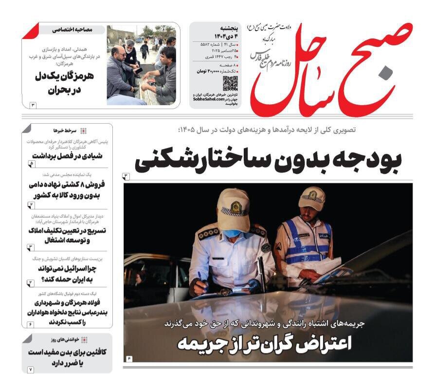صفحه نخست روزنامه های هرمزگان روز پنجشنبه ۴ دی‌ماه