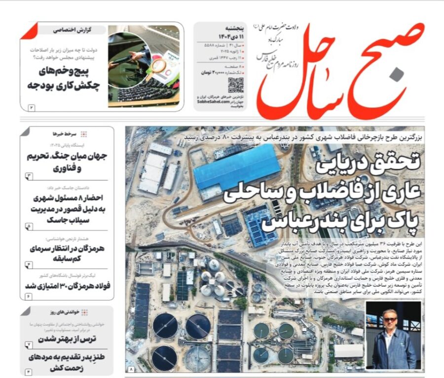 صفحه نخست روزنامه های هرمزگان روز پنجشنبه ۱۱ دی‌ماه