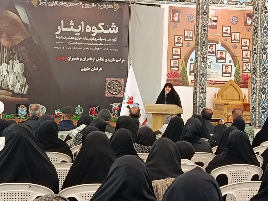 به گزارش خبرنگار مهر، فاطمه زهرا حجی پور صبح پنجشنبه در مراسم شکوه ایثار آئین ملی تجلیل و تکریم از مادران و همسران شهید در استان امامزادگان باقریه بیرجند به مناسبت سالروز وفات حضرت ام البنین با حضور معاون سیاسی، امنیتی و اجتماعی استانداری خراسان جنوبی با گرامیداشت این مناسبت گفت: فرزندان خود را ولایی باید تربیت کنیم تا آنها زمینه ساز ظهور حضرت حجت (عج) باشند.