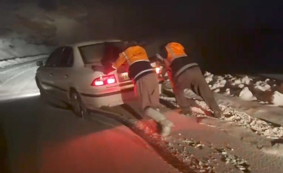 عملیات رهاسازی خودروهای گرفتار در برف در محور مریوان – سقز