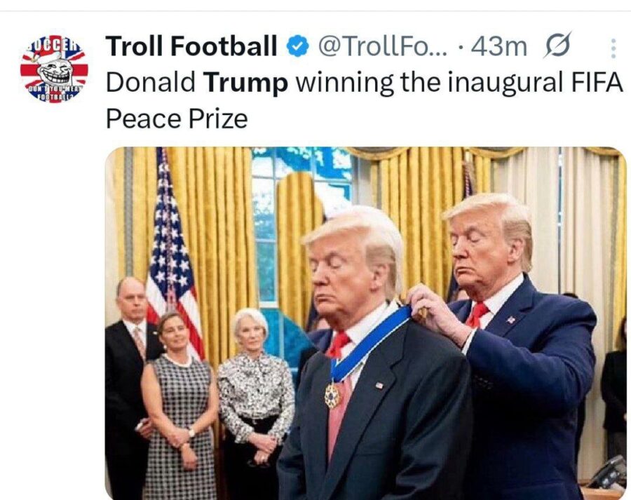 فیفا چیز مسخره‌ای به نام «جایزه صلح فیفا» اختراع و آن را به ترامپ اهدا کرد، چون «صلح نوبل» جایزه واقعی به او نداد.