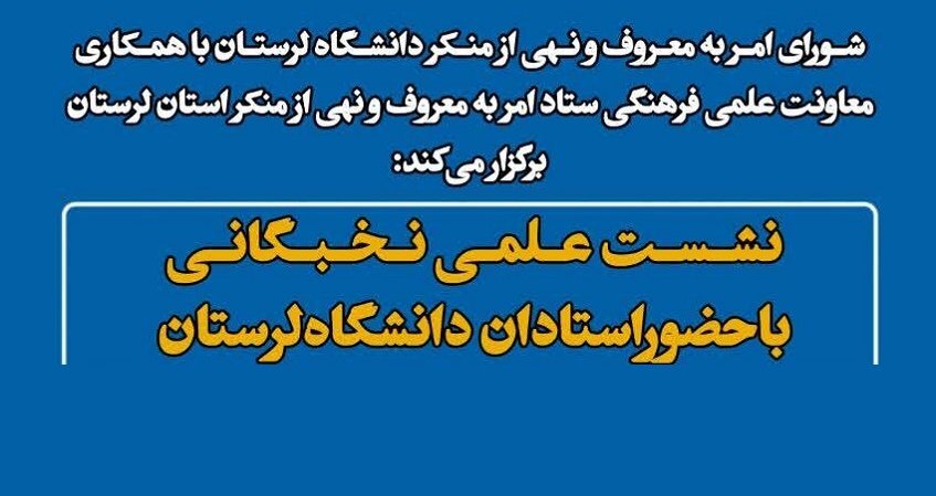 به گزارش خبرگزاری مهر، شورای امر به معروف و نهی از منکر دانشگاه لرستان با همکاری معاونت علمی فرهنگی ستاد امر به معروف و نهی از منکر استان لرستان، نشست علمی و نخبگانی با محوریت «تأثیر معنوی امر به معروف و نهی از منکر بر اصلاح اخلاق فردی و اجتماعی» برگزار می‌کند.
