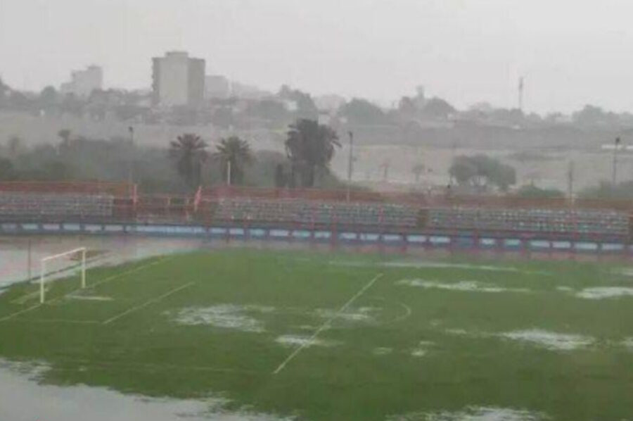 با وجود هشدارهای هواشناسی مبنی بر بارش شدید در استان هرمزگان، مسئولان ورزشگاه خلیج فارس کاور روی چمن نکشیدند تا چمن دچار آب‌گرفتگی شود!