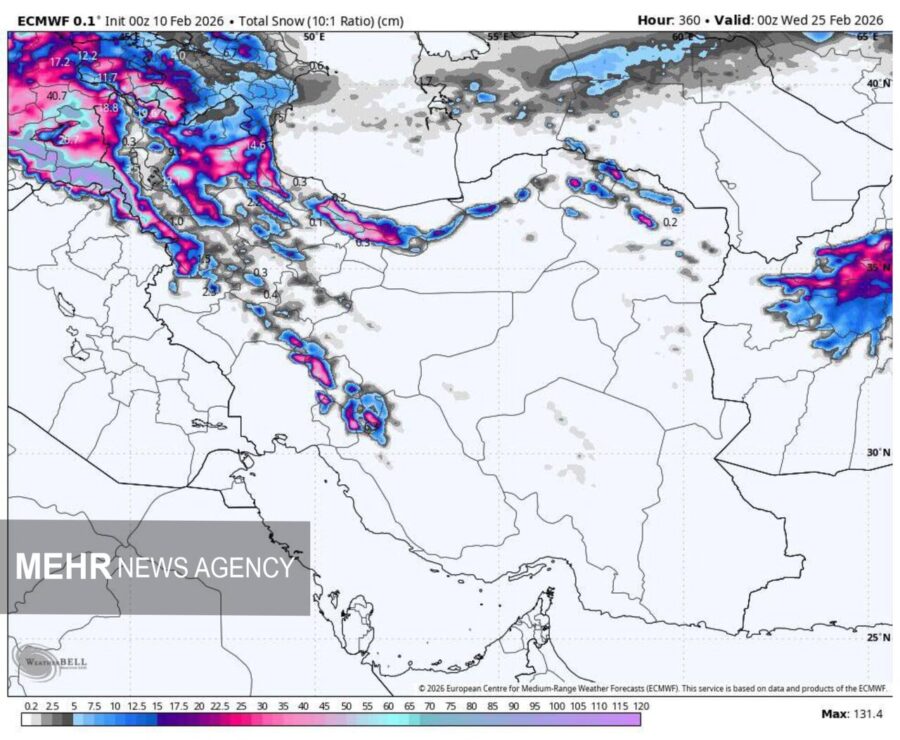 ضیائیان بیان کرد: روز پنجشنبه (۲۳ بهمن) بارشهای پراکنده در برخی نقاط استانهای واقع در شمالغرب، غرب، جنوب غرب، ارتفاعات البرز مرکزی و شمال شرق کشور و روز جمعه (۲۴ بهمن) در ارتفاعات مرکزی البرز در برخی ساعات پیشبینی میشود.